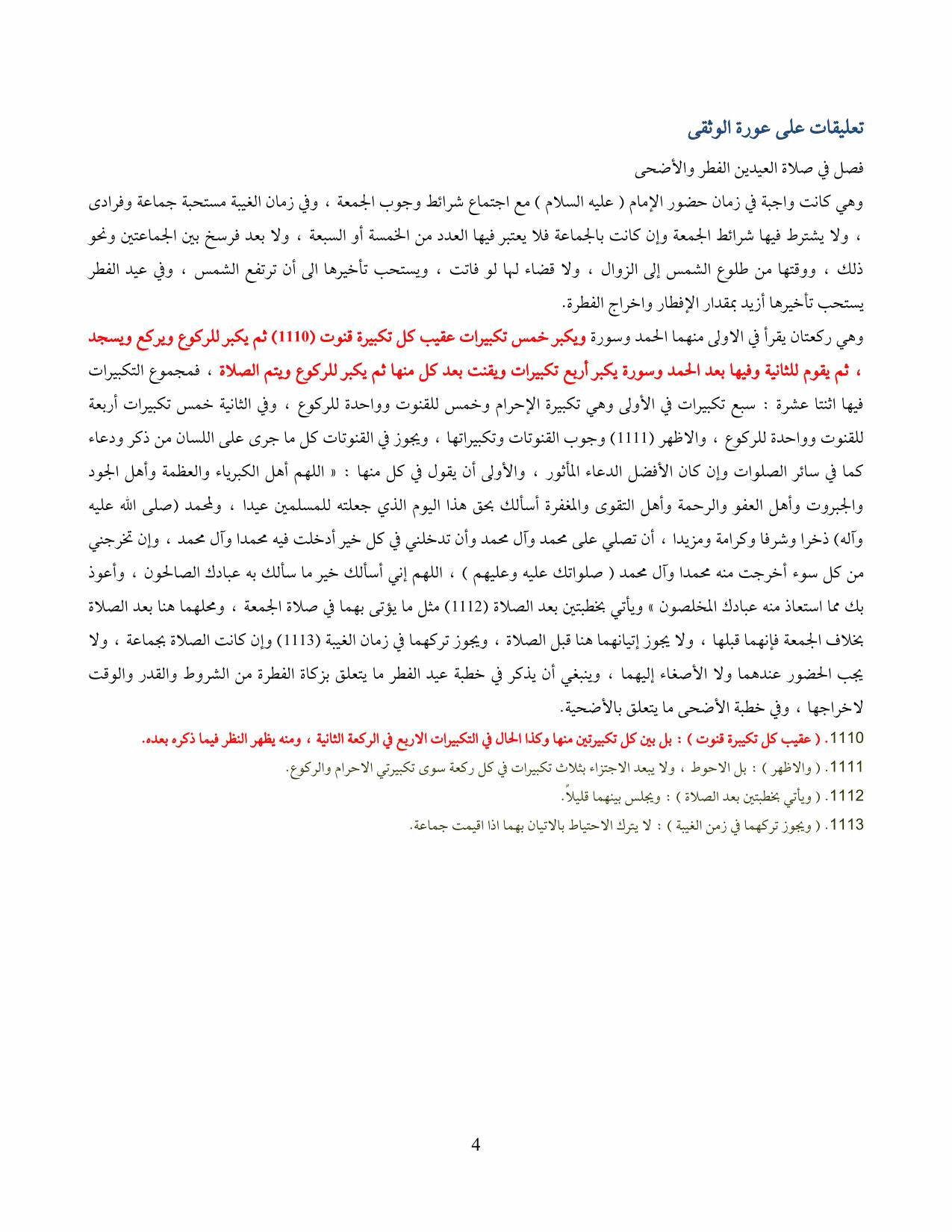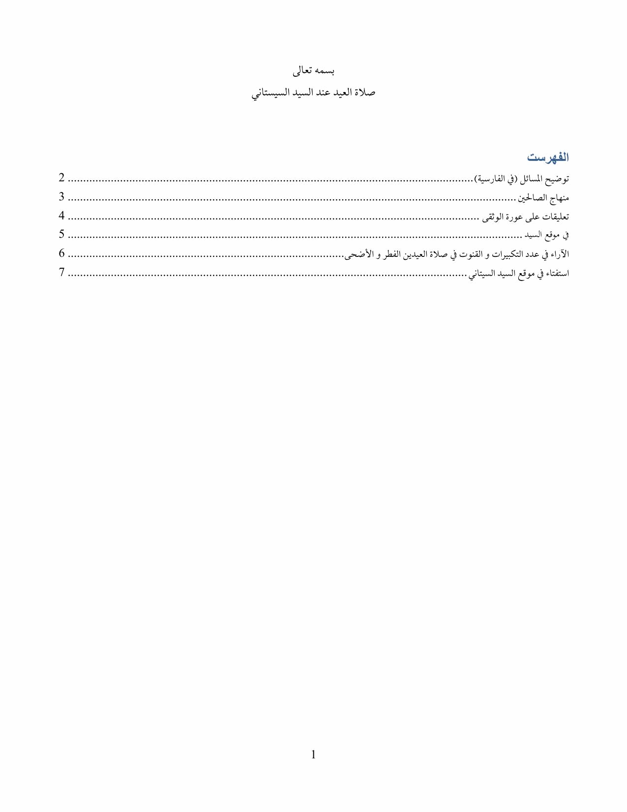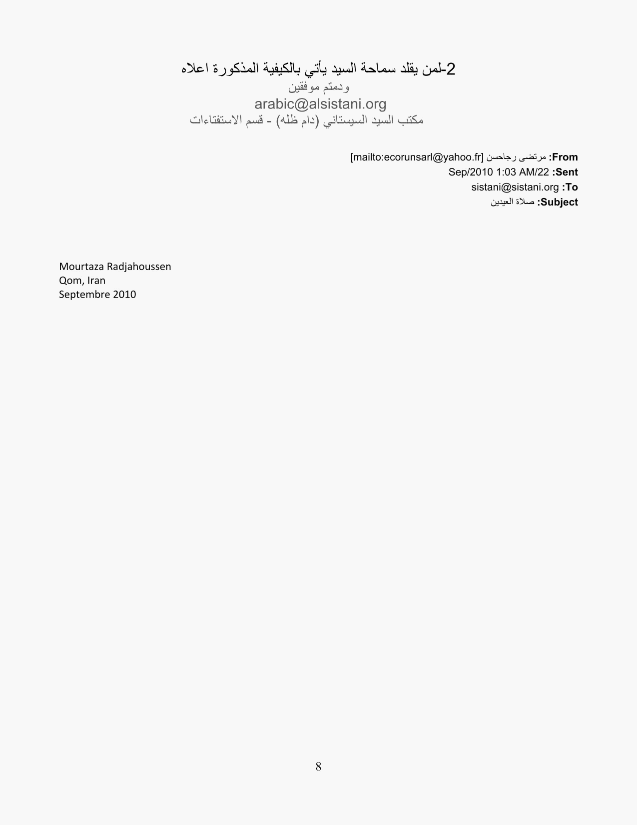 Texte en arabe et explicationsde Mourtouza RADJAHOUSSENsur la précision apportée par Ayatoullah al Ouzama Sayyed Ali Al Housseini As Sistani concernant le Namaz-e-Eid
