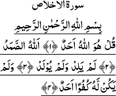 Selon l'Imam al-Sâdiq (p): «Quiconque récite la Sourate al-Tawhîd après chaque prière obligatoire, Allàh lui accordera le bien de ce monde et de l'Au-delà, et Il lui pardonnera, ainsi qu'à ses parents et à ses enfants».