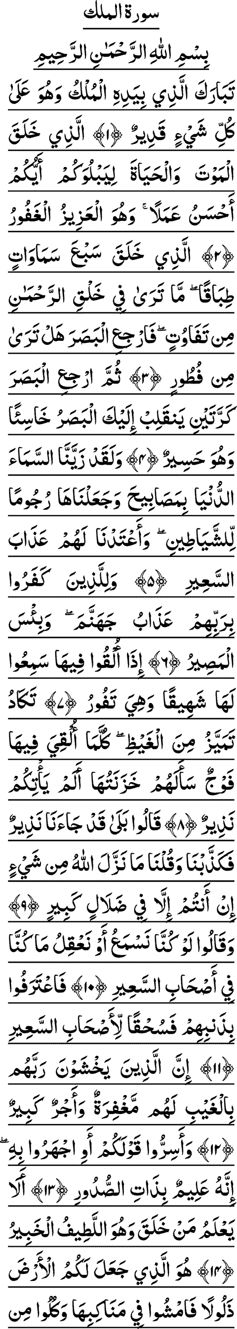 1. TABARAKA ALLATHEE BIYADIHI ALMULKU WAHUWA AAALA KULLI SHAY-IN QADEERUN