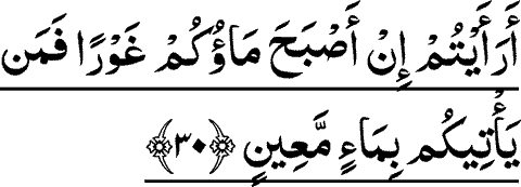 30. QUL ARAAYTUM IN ASBAHA MAOKUM GHAWRAN FAMAN YA/TEEKUM BIMA-IN MAAAEENIN