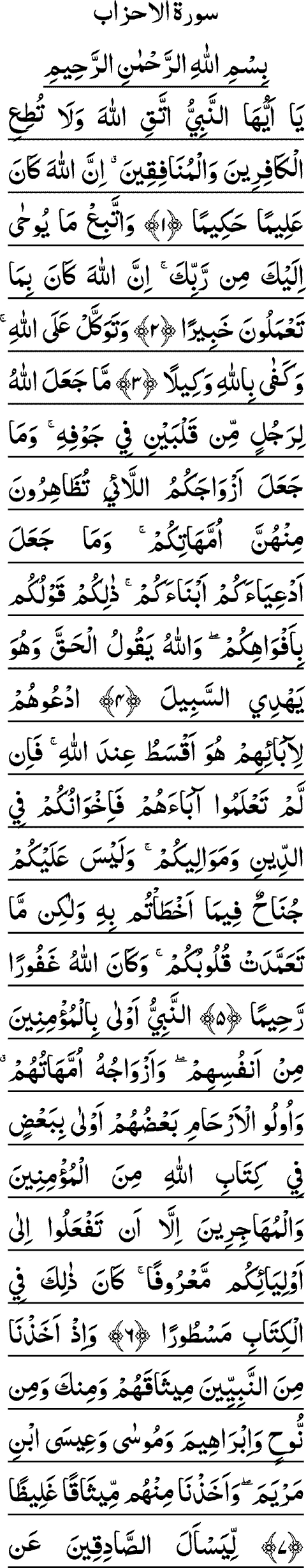 1. YA AYYUHA ALNNABIYYU ITTAQI ALLAHA WALA TUTIAAI ALKAFIREENA