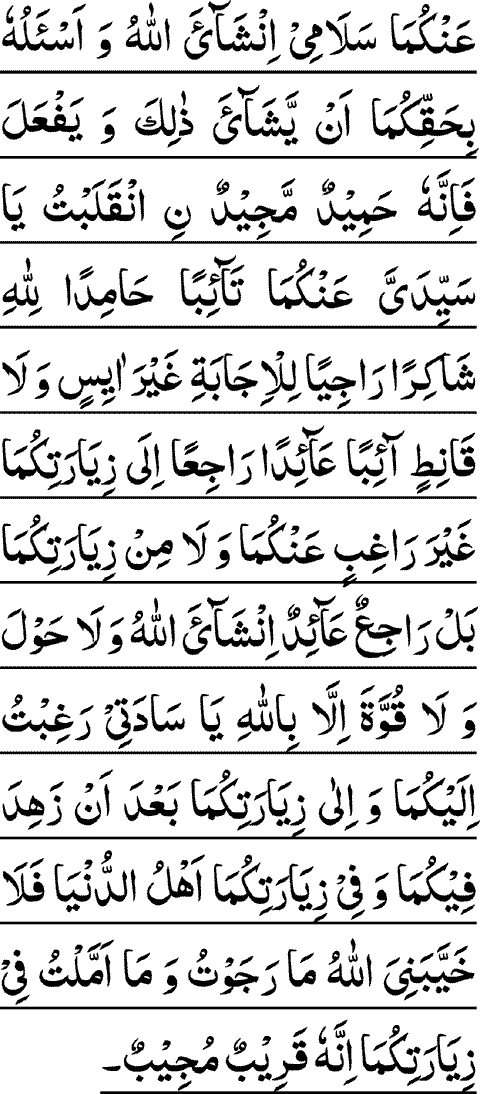 sans me lasser de vous ni de vous visiter. Si Allàh veut, je