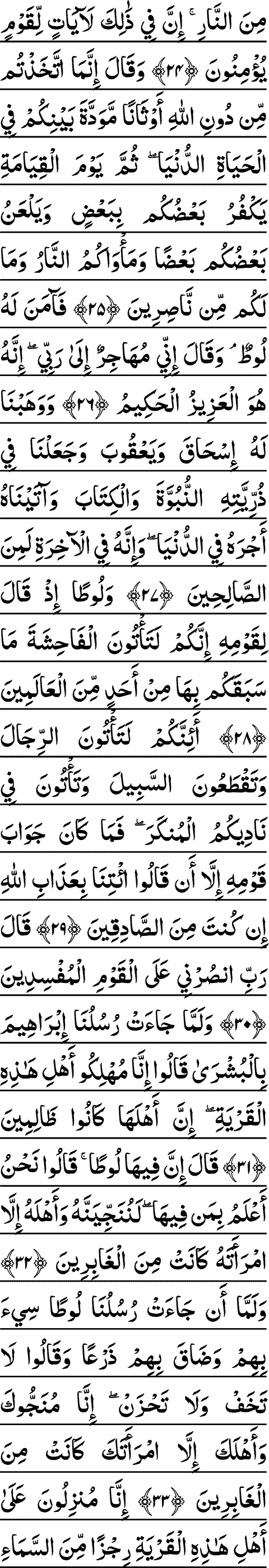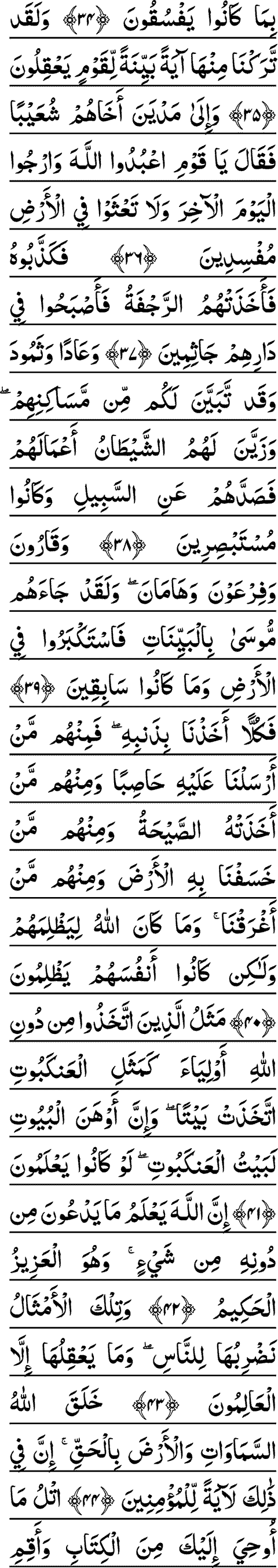 34. INNA MUNZILOONA AAALA AHLI HATHIHI ALQARYATI RIJZAN MINA ALSSAMA-I BIMA KANOO YAFSUQOONA