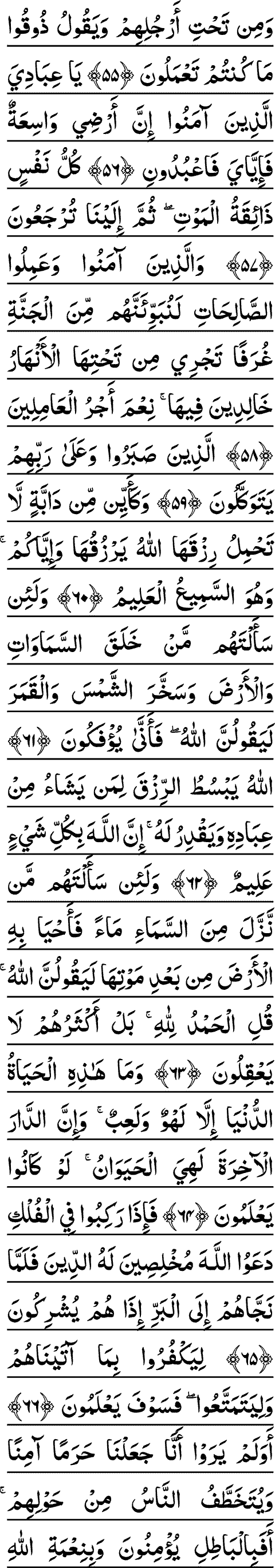 55. YAWMA YAGHSHAHUMU ALAAATHABU MIN FAWQIHIM WAMIN TAHTI ARJULIHIM WAYAQOOLU THOOQOO MA KUNTUM TAAAMALOONA
