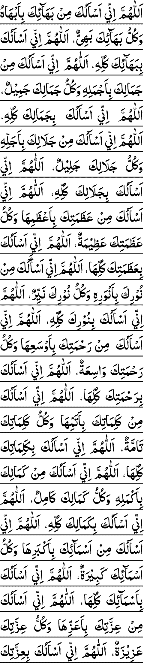 ALLÂHUMMA INNÎ AS’ALUKA MIN ASMÂ’KA BI-AKBARIHÂ WA KULLU ASMÂ’IKA