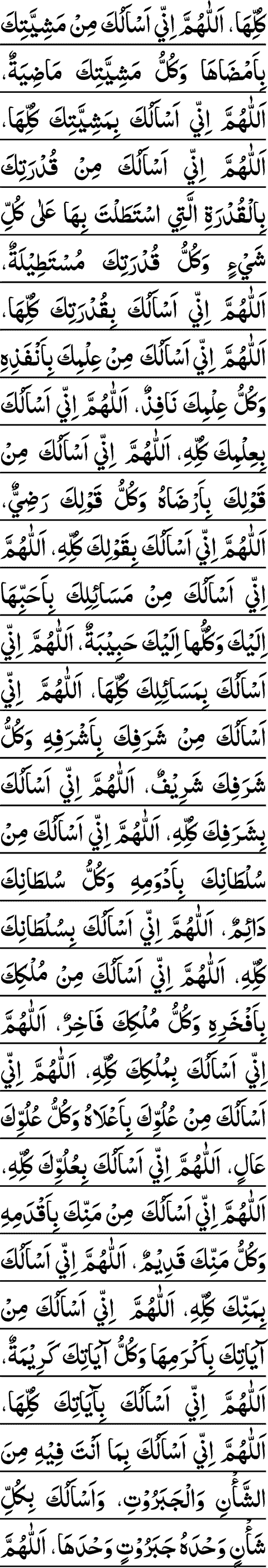 ALLÂHUMMA INNÎ AS’ALUKA BI-QUDRATIKA KULLIHÂ