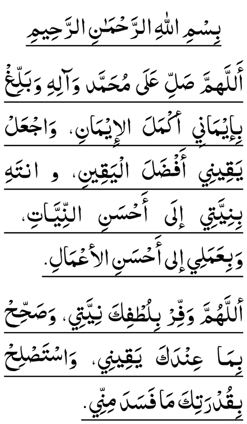 ALLAHUMMA WAFFIR BI-LUTFIKA NIYYATI, WA ÇAH-HIH BI-MA ‘INDAKA YAQINI,