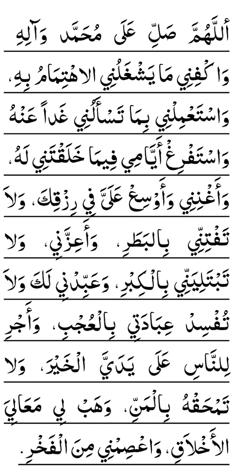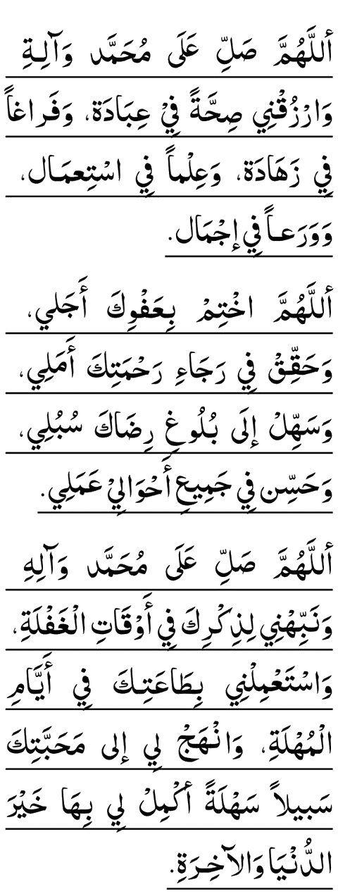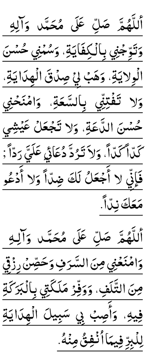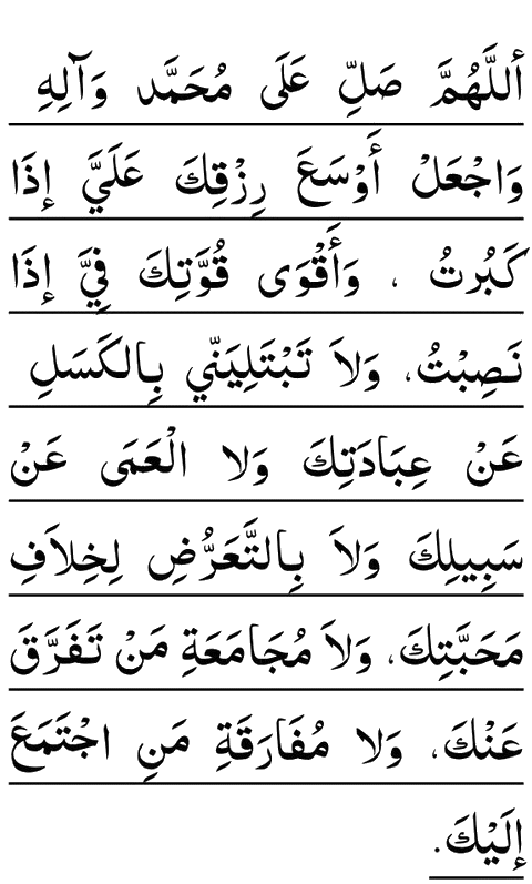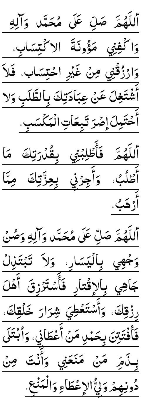 ALLAHUMMA ÇALLI ‘ALA MUHAMMADIN WA ALIHI WA-J‘AL AWSA‘A RIZQAKA ‘ALAYYA