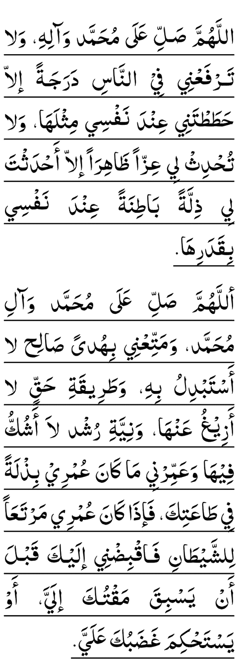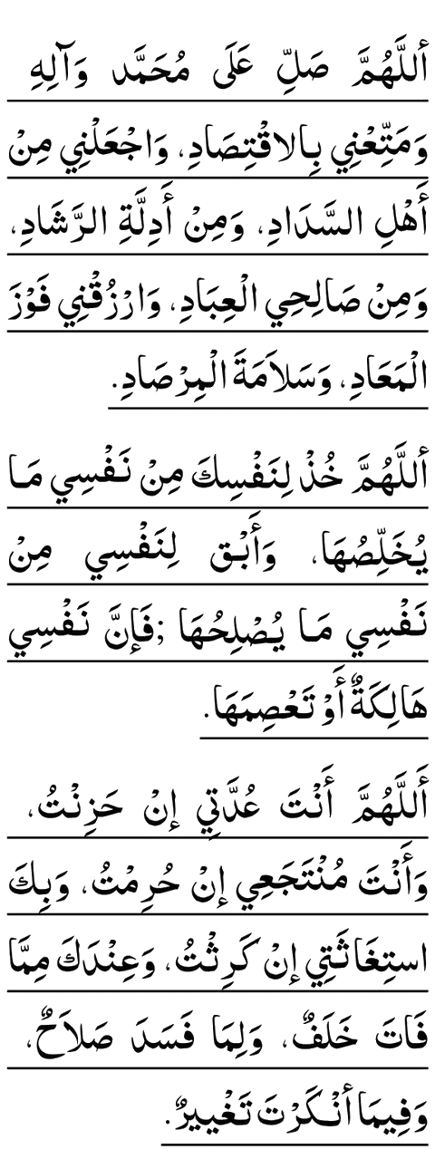 ALLAHUMMA ÇALLI ‘ALA MUHAMMADIN WA ÂLIHI WA SADDIDNI LI-AN U‘ARIDHA MAN