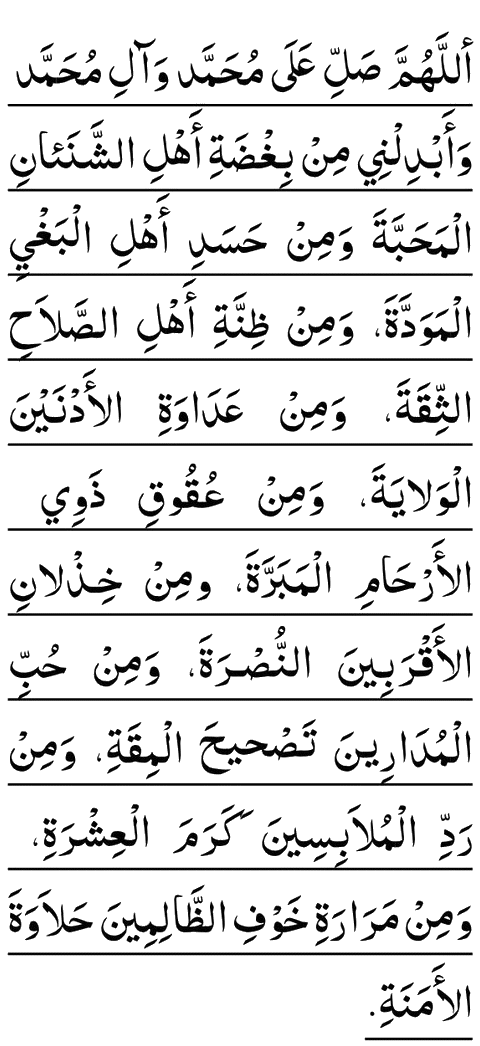 ALLAHUMMA ÇALLI ‘ALA MUHAMMADIN WA ÂLE MUHAMMADIN WA ABDILNI MIN