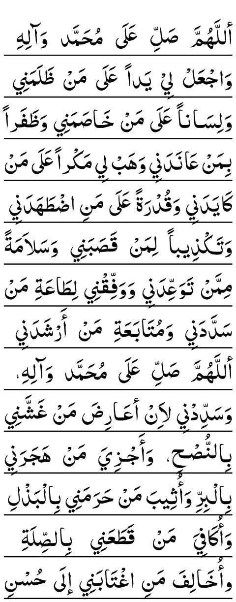 ALLAHUMMA ÇALLI `ALA MUHAMMADIN WA ALIHI WA-J‘AL LI YADAN ‘ALA MAN