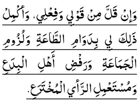 ÇALIHIN LA ASTABDILU BIHI WA TARIQATI HAQQIN LA AZIGHU ‘ANHA WA NIYYATI