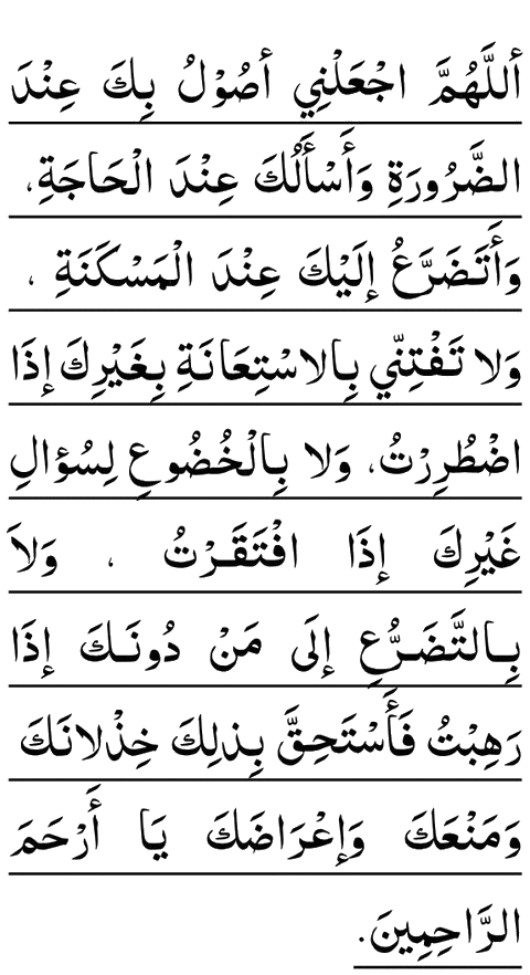 ALLAHUM-MAJ‘ALNI AÇULU BIKA ‘IND-ADH-DHARURATI WA AS’ALUKA