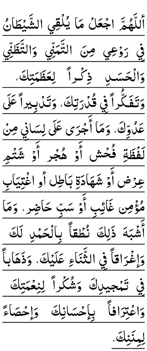 ALLAHUM-M-AJ‘AL MA YULQI-CH-CHAYTANU FI RUW‘I MIN-AT-TAMANNI