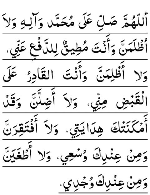 ALLAHUMMA ÇALLI ‘ALA MUHAMMADIN WA ALIHI WA LA UDHLAMMANA WA ANTA