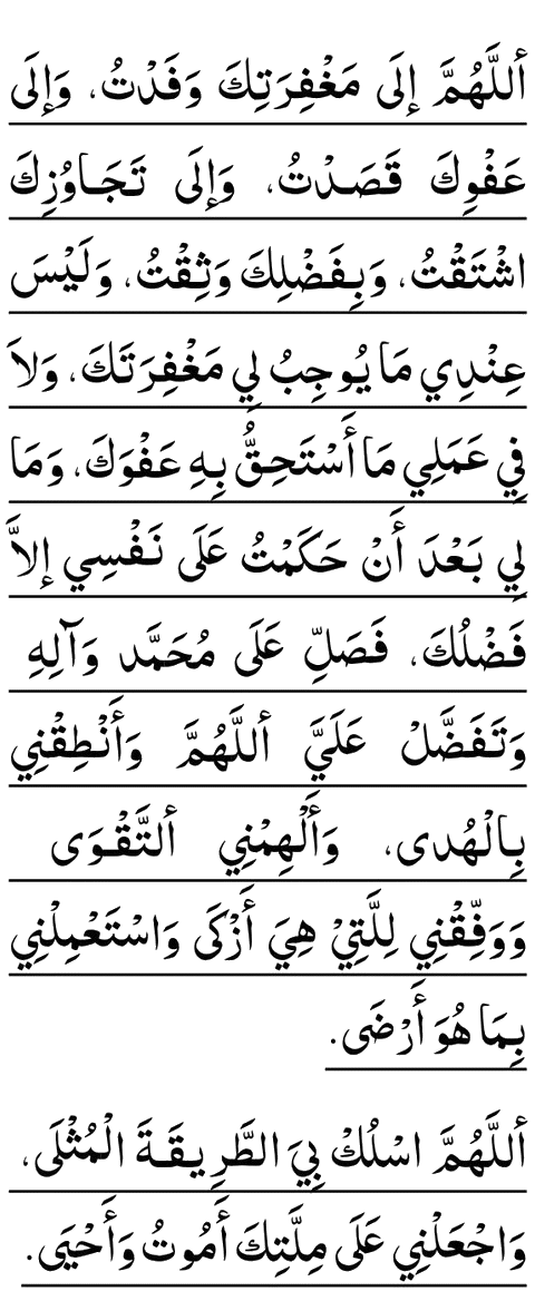ALLAHUMMA ILA MAGH-FIRATIKA WAFADTU WA ILA ‘AFWIKA QAÇADTU WA ILA