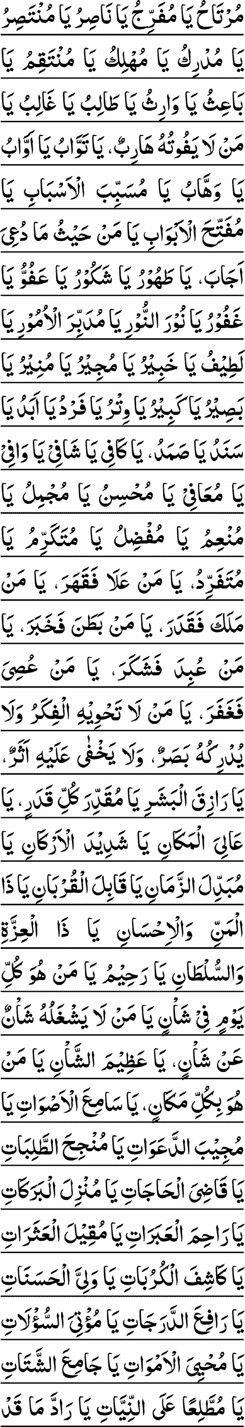 YA MANI‘U! YA SAMI‘U! YA ‘ALIMU! YA HALIMU! YA KARIMU! YA HAKIMU! YA