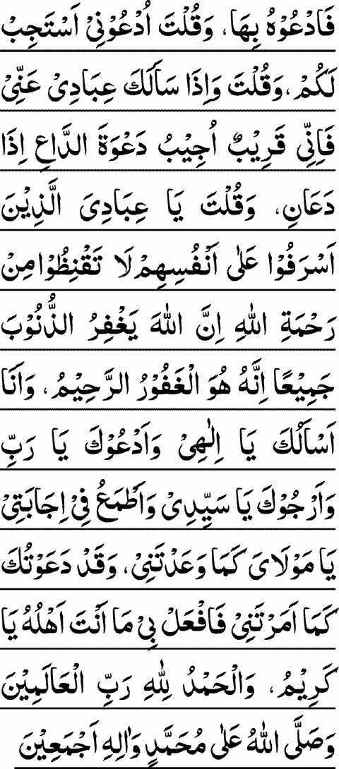 Ne pas oublier de former sa requête à la fin de la lecture de ce doua, elle sera exaucée inchâ’Allàh.