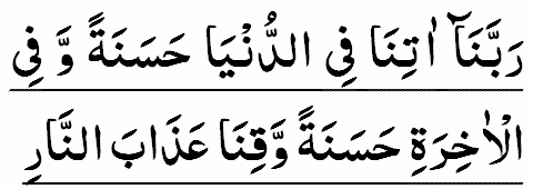 RABBANA AATINAA FID DUNIYA H’ASANATANW WA FIL AAKHIRATI H’ASANATANW WA QINA A’DHAABAN NAAR.