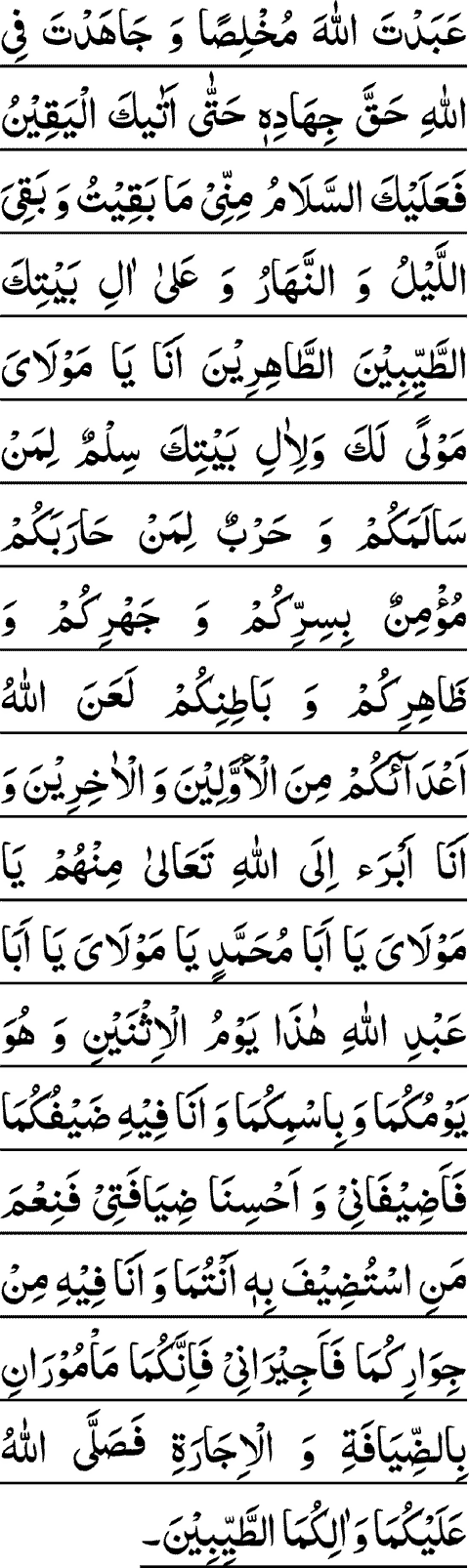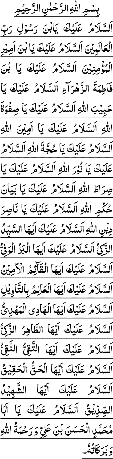 NAQIYYO ASSALAAMO A'LAYKA AYYOHAL HAQQUL HAQEEQ ASSALAAMO A'LAYKA AYYOHASH