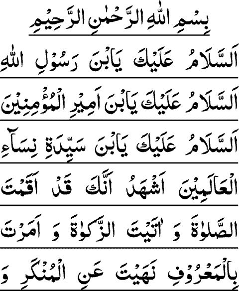 ASSALAAMO A'LAYKA YABNA RASOOLE RABBIL A'ALAMEENA ASSALAAMO A'LAYKA YABNA AMEERIL MOMINEENA