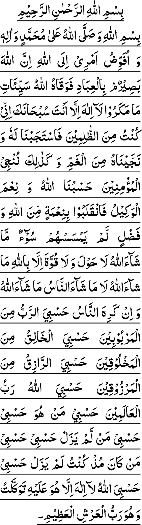 HASSBEYALLAHO LA ILAHA ILLA HOWA ALAYHI TAWAKKALTO WA HOWA RABBOUL