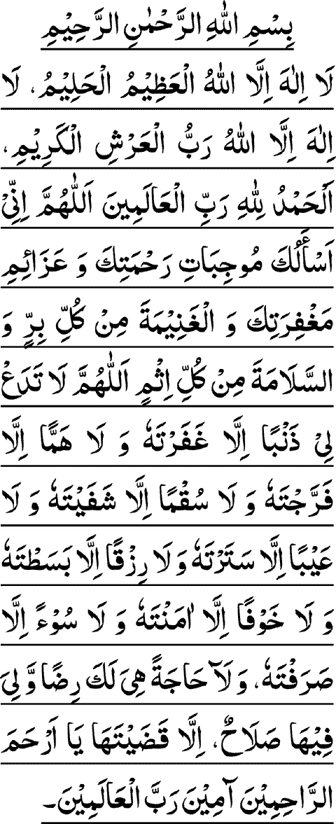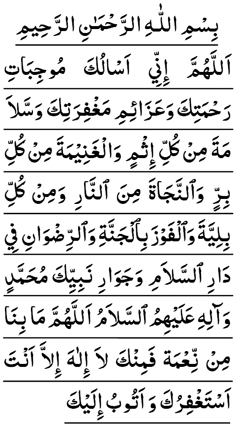 ALLAHOUMMA INNI ASS-ALOKA MOUDJIBATI RAHMATIK WA AZA-IMA MAGHFIRATIK