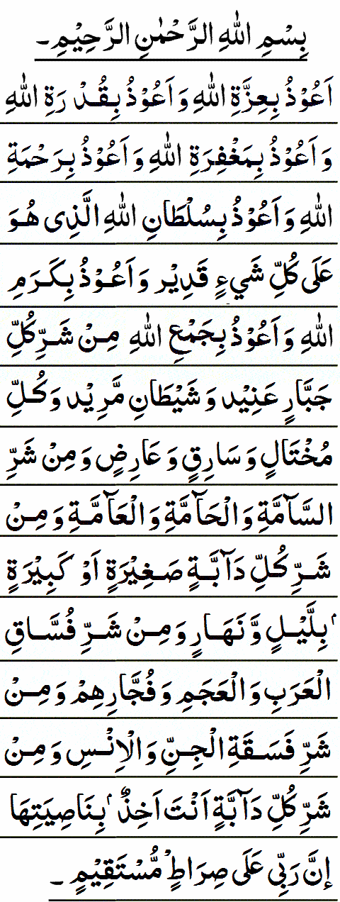 ‘AOUNZO BI IZZATILLAH WA ‘AOUNZO BIKOUDRATILLAH WA ‘AOUNZO