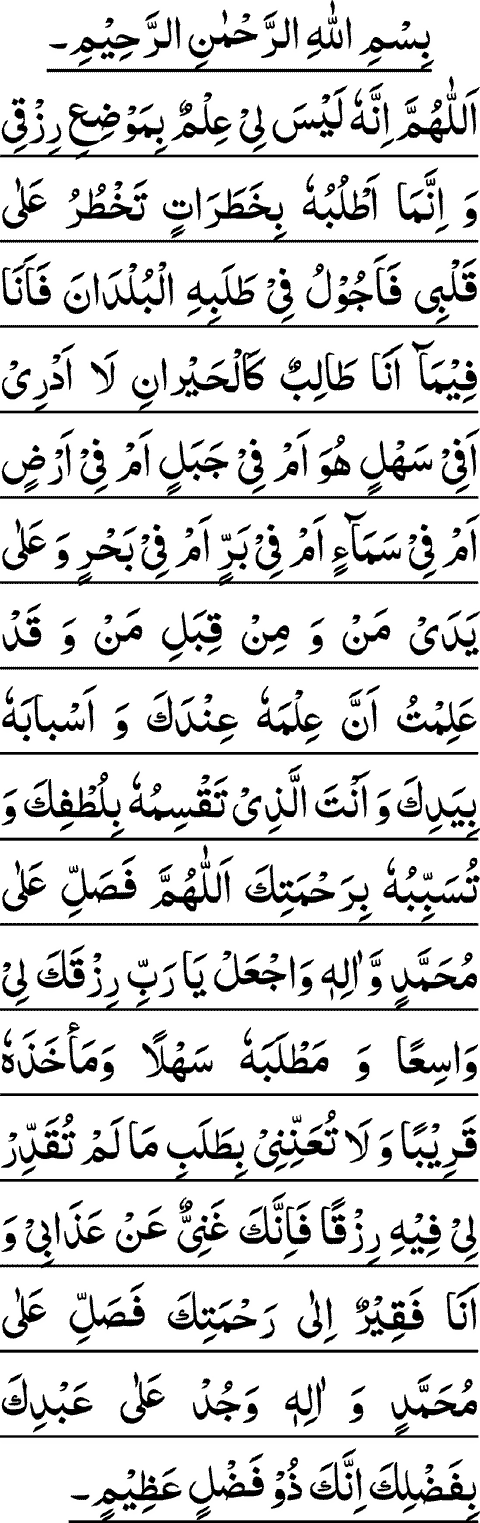 WAJ-A'L YAA RABBE RIZQAKA LEE WAA-SE-A'N WA MATLABAHU SAHLAN WA