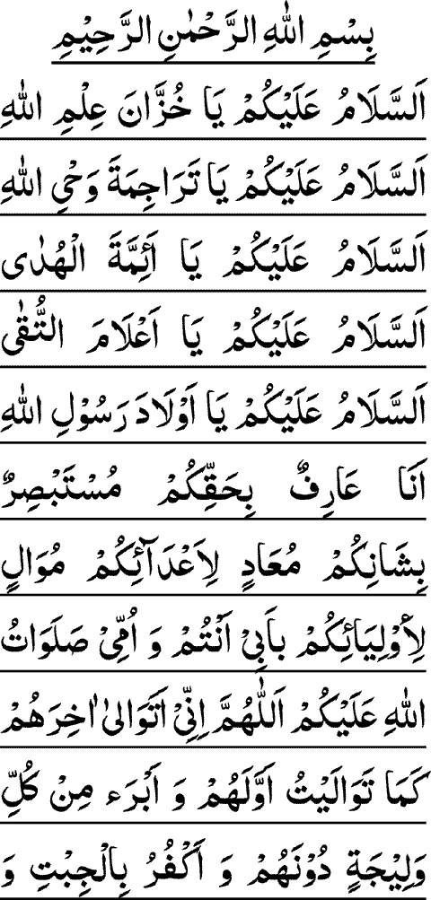 TARAAJEMATA WAHYIL LAAHE ASSALAAMO A'LAYKUM YAA A-IMMATAL HODAA