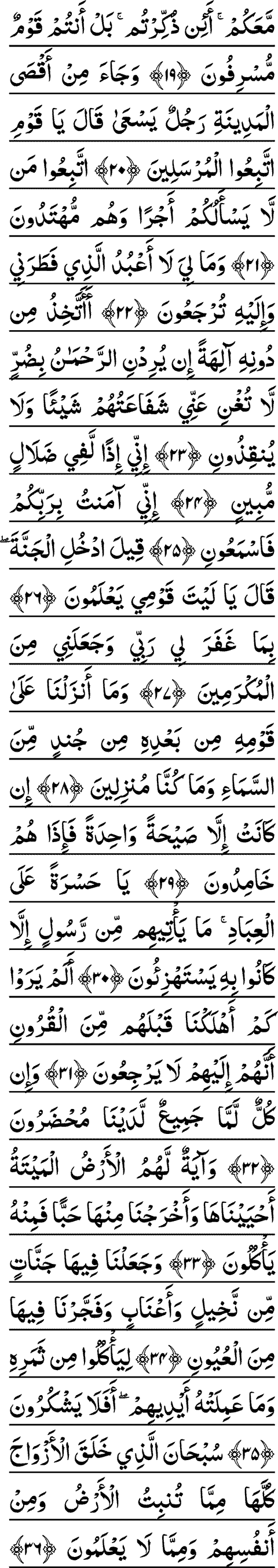 7. LAQAD HAQQA ALQAWLU AAALA AKTHARIHIM FAHUM LA YU/MINOONA