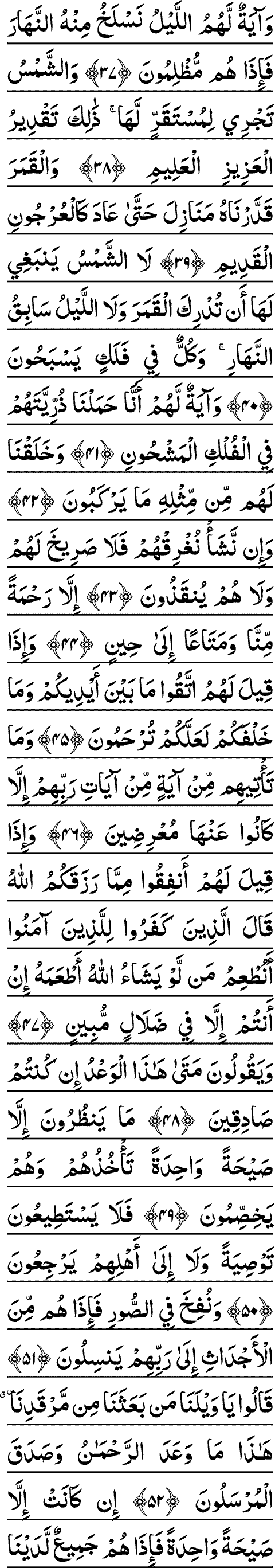 40. LA ALSHSHAMSU YANBAGHEE LAHA AN TUDRIKA ALQAMARA WALA ALLAYLU SABIQU ALNNAHARI WAKULLUN FEE FALAKIN YASBAHOONA