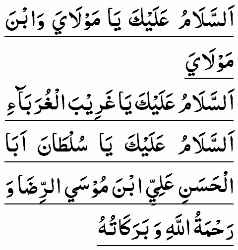 ASSALÀMO ‘ALAYKÀ YÂ SULTAN YÂ ABA AL HASSAN, ‘ALI YABNA MUSSA AR REDHÀ WA RAHMATULLÀHI WA BARAKÀTUHU
