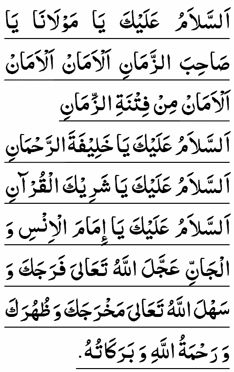ASSALÀMO ‘ALAYKÀ YÂ MAWLÀNÀ YÂ ÇÀHIB AZ ZAMAN, AL AMÀN, AL AMÀN, AL AMÀN MIN FITNATIZ ZAMÀN